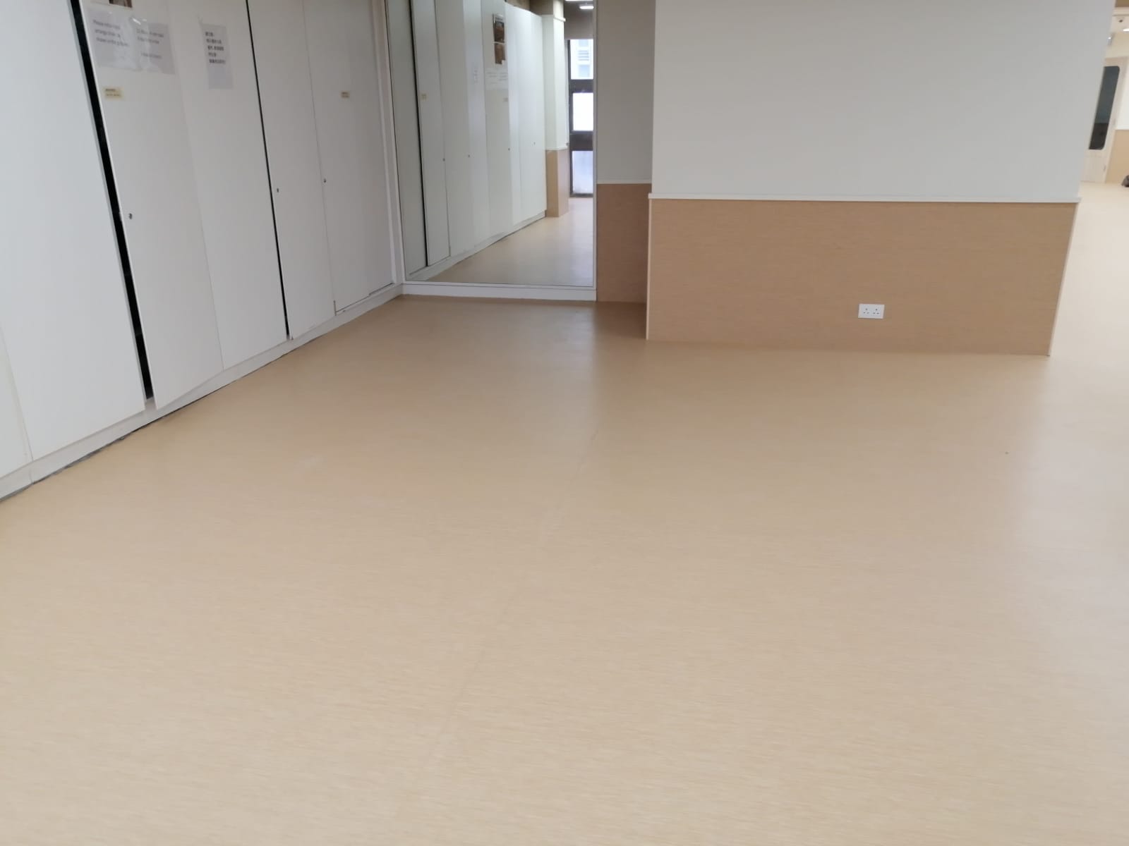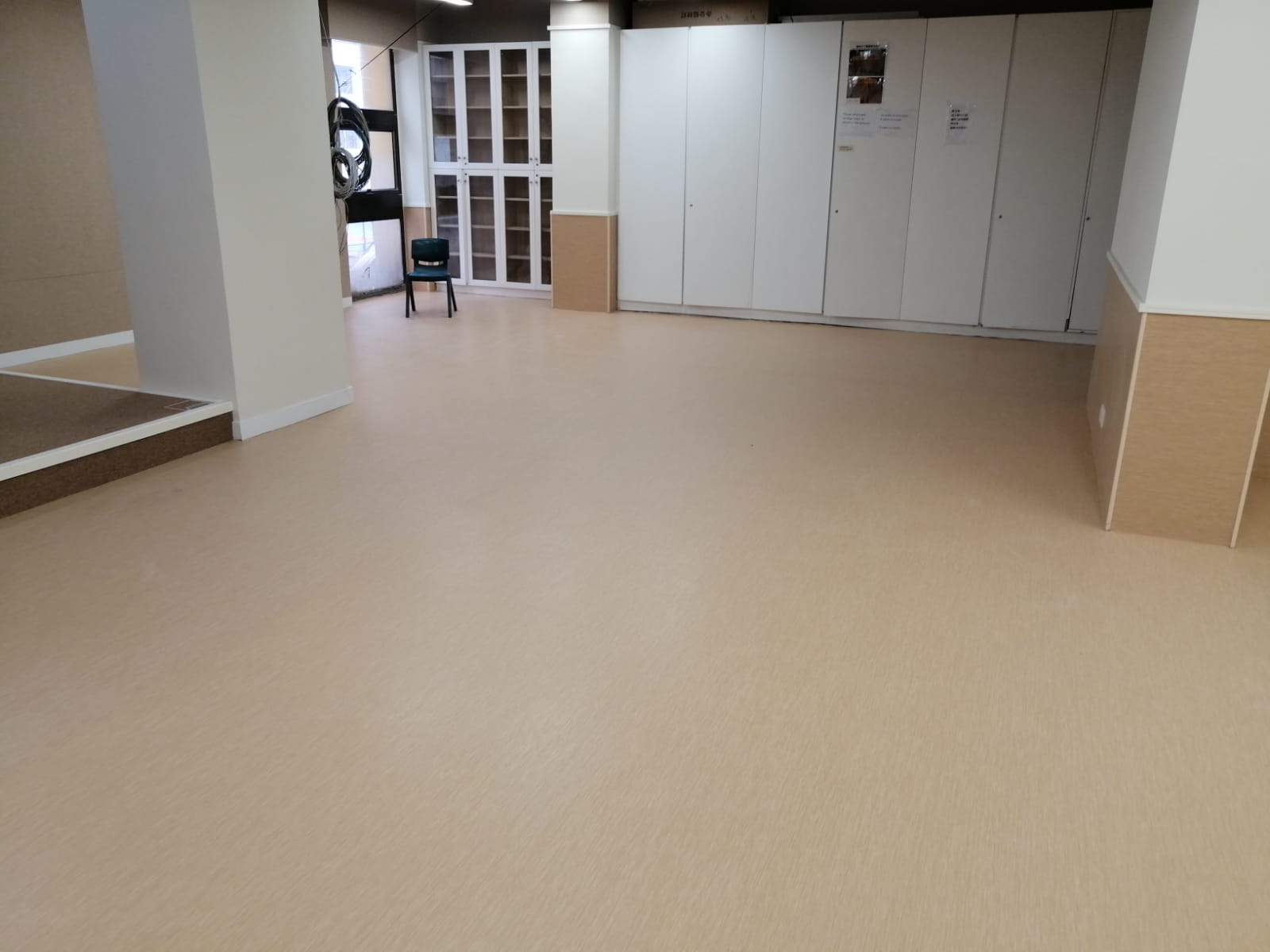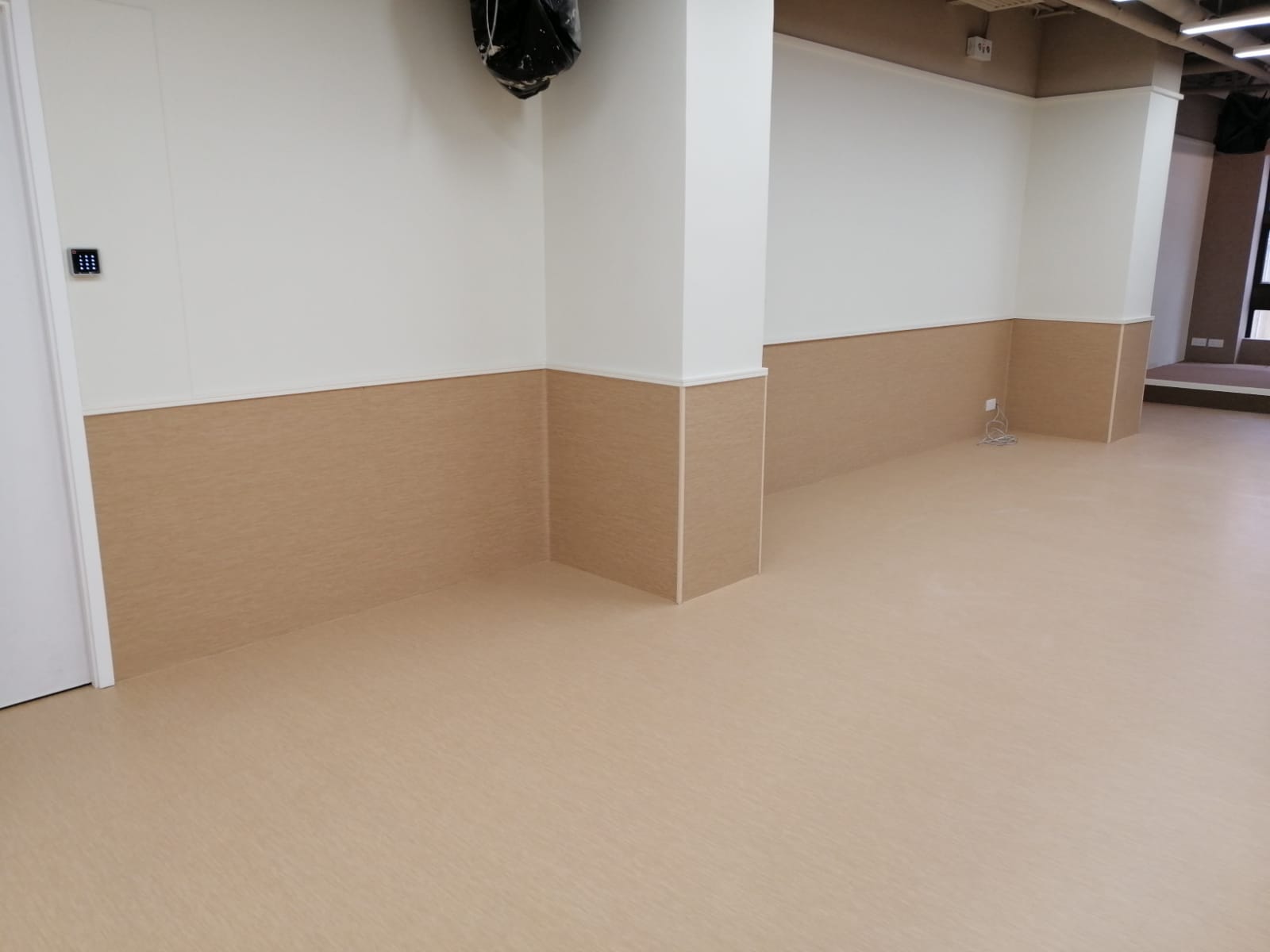 經驗: | 採用專業人員和塑膠地材黏合劑進行上述 TOLI PVC 膠地蓆鋪設,所有接縫均是以熱焊方式連接並平鋪在乾旱、清潔、完好且平整的實心混凝土地面上。 |