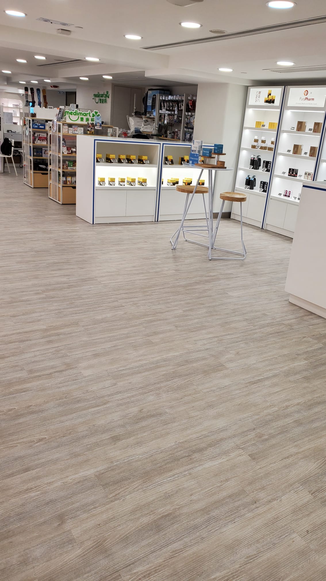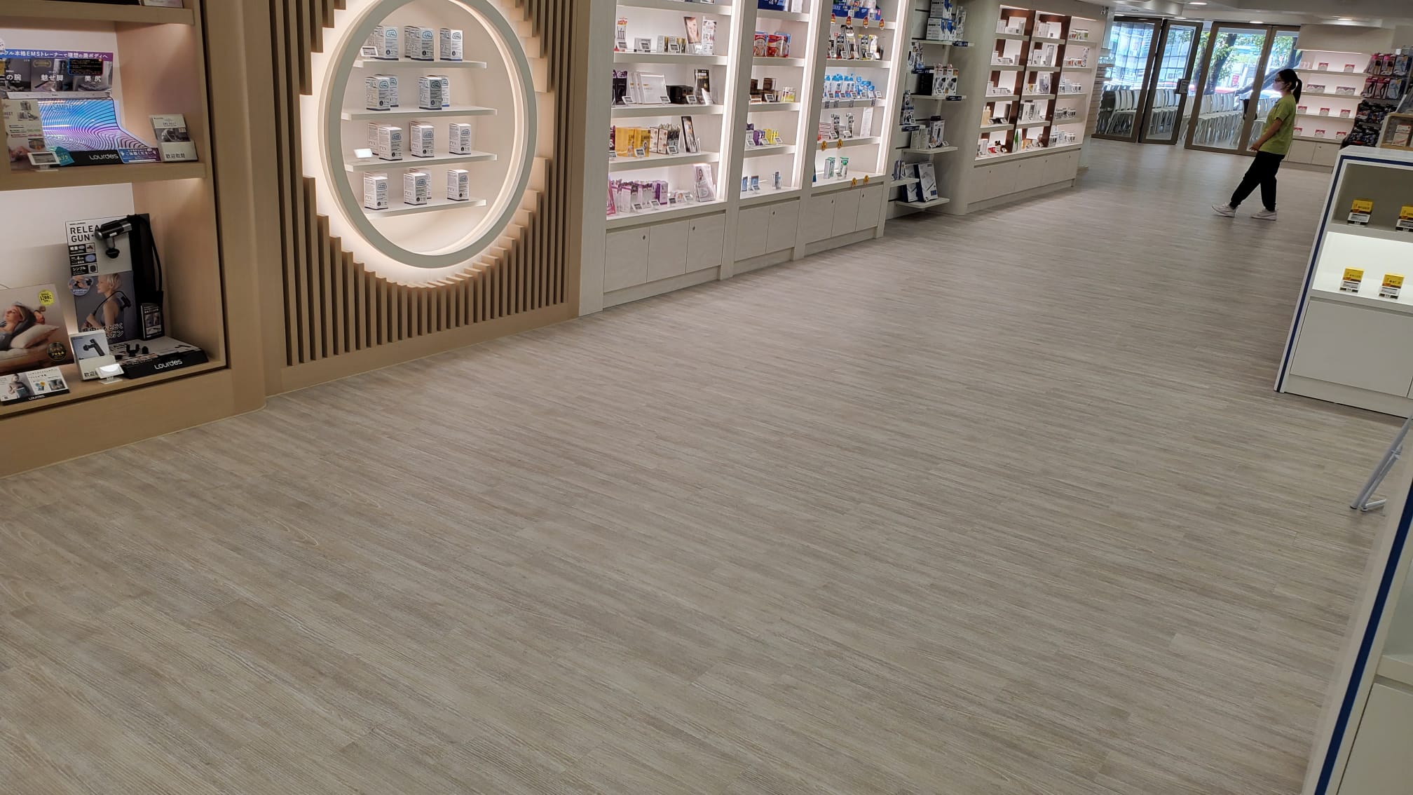 經驗: | 採用專業人員並使用塑膠地材黏合劑把上述東理膠地板以 '工' 字形式鋪設到乾旱、清潔、完好且平整的實心混凝土地面上。 |